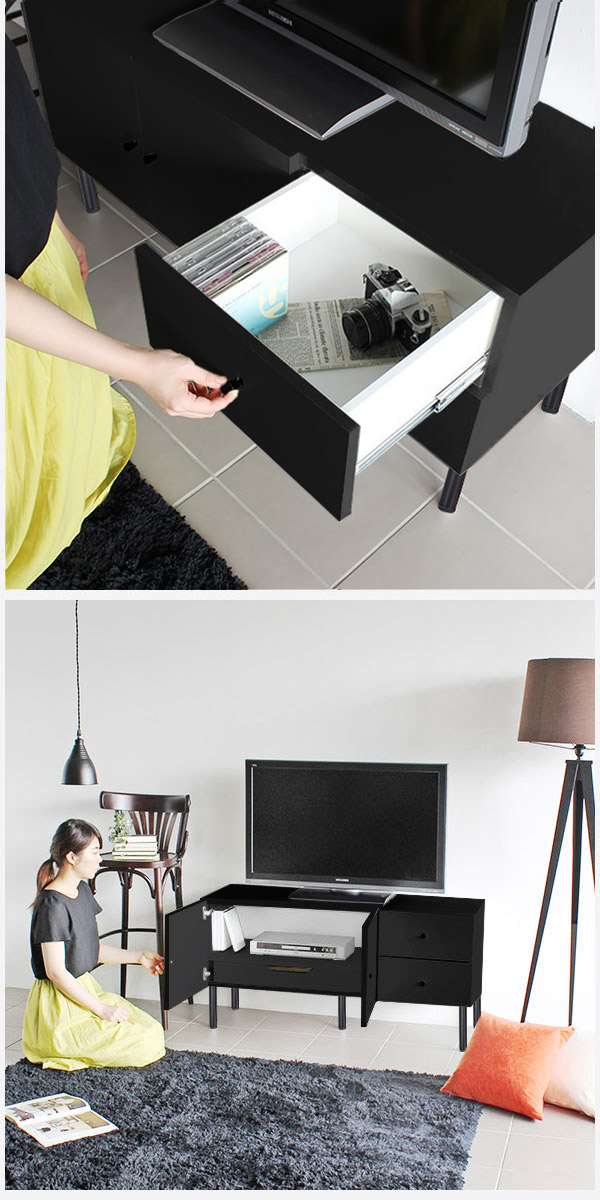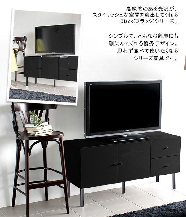 テレビ台 引き出し 120cm 120 サイドボード テレビボード ローボード 脚付き 鏡面 黒 ブラック 鏡面仕上げ black 120LTV+C ☆
