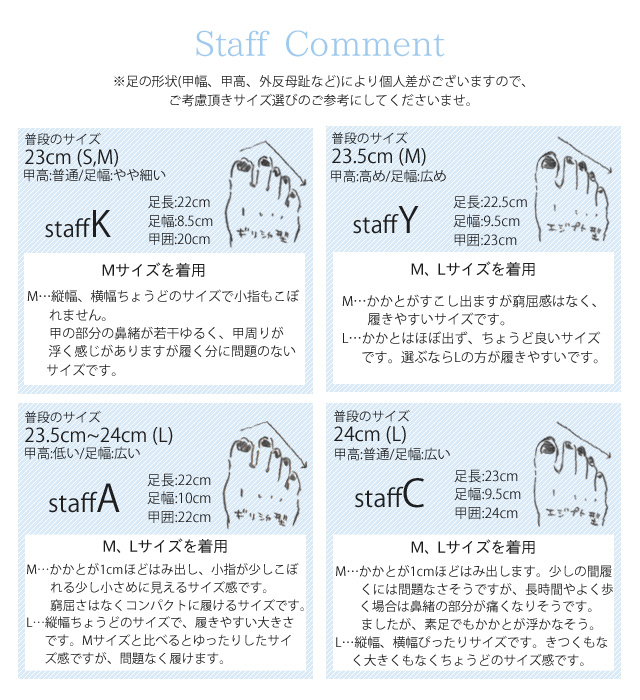 M(22.5〜23.5cm)、L(23.5〜24.5cm)
