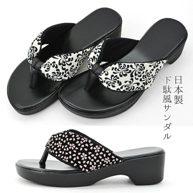 下駄 サンダル レディース 日本製 木目調 印伝 花柄 祭り 痛くない 下駄風サンダル (msg-80381) トング 浴衣 和装 履物 スリッパ つっかけ 祭草履 祭雪駄 草履 雪駄 ヒール 可愛い 贈り物 プレゼント ギフト 母の日 女性 agesugi_sfa