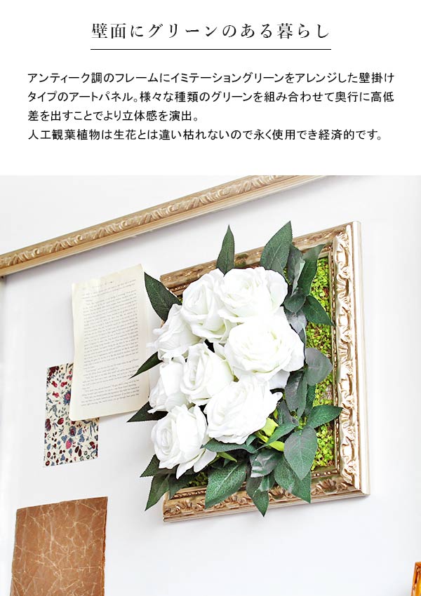 光触媒フラワー 薔薇 造花 壁掛け おしゃれ 玄関 光触媒 人工観葉植物 寄せ植え フレーム Botanical classic f4-3030h GD 》