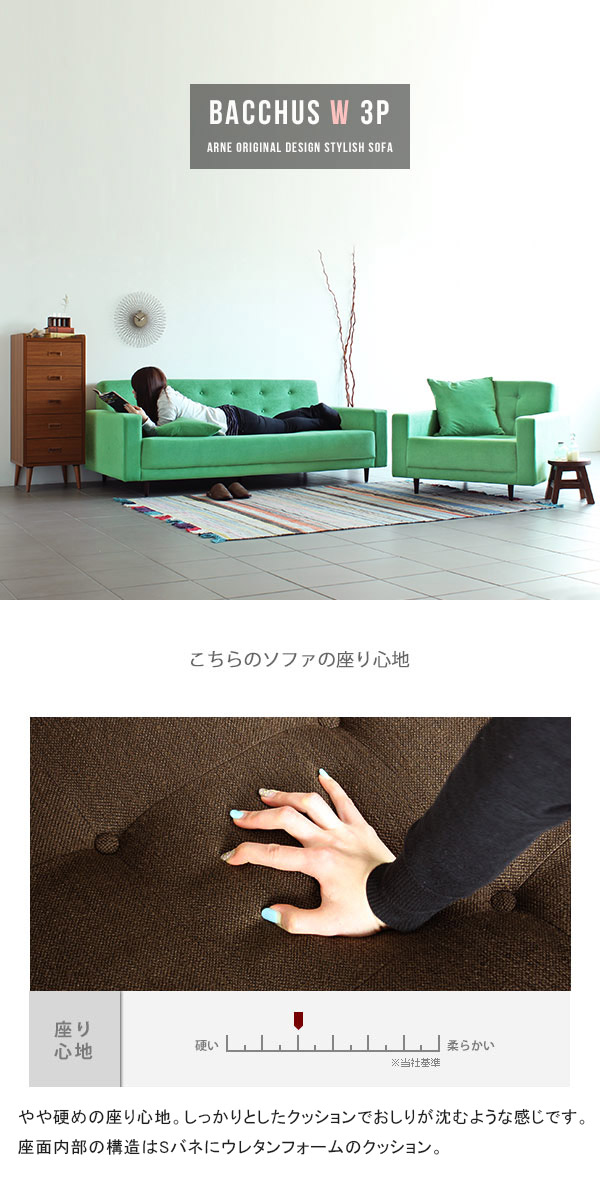 ソファ 3人掛け 布 北欧 おしゃれ レトロ 3人 リビングソファ ワイドソファ ローソファ 日本製 Bacchus W 3P □