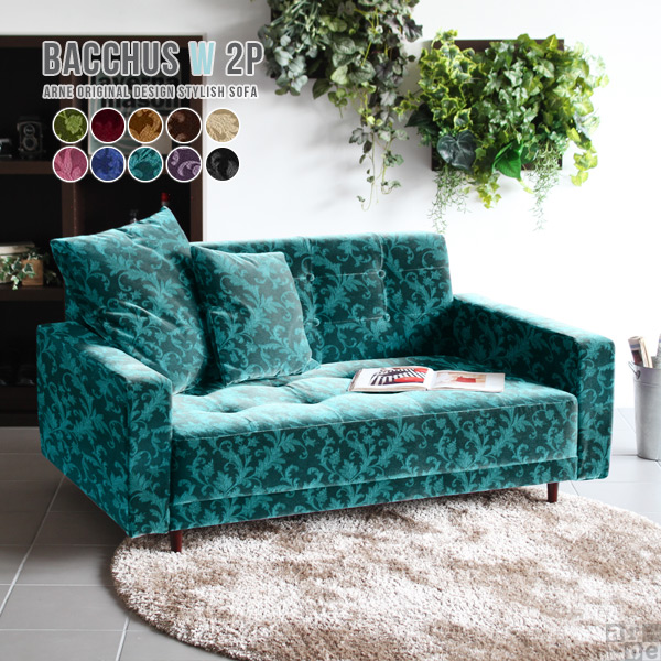 ソファ 脚付き 2人掛け レトロ お洒落なリビングソファ 日本製 ワイドソファ ローソファ クラシック Bacchus W 2P □