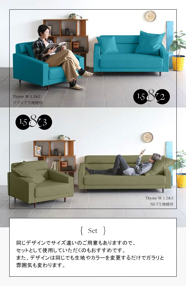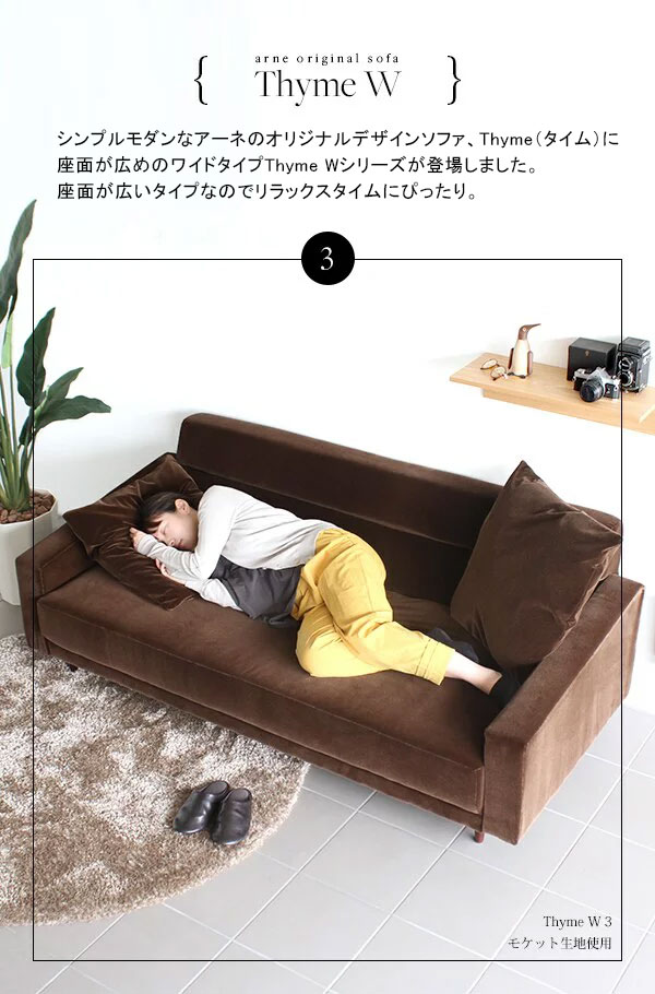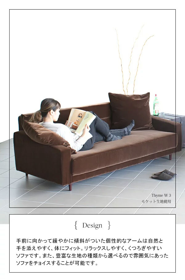 ソファ モダン ワイド リビングソファー 3人掛け おしゃれ ダイニング カフェ 布張りソファ 日本製 Thyme W 3P □