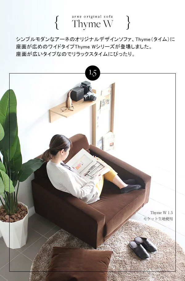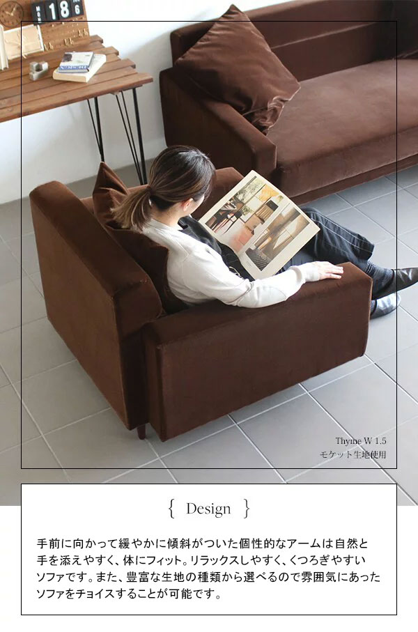 ソファ コンパクト ソファー 1人 モダン レトロ リビングソファ おしゃれ 座面ワイドソファー 日本製 Thyme W 1.5P □