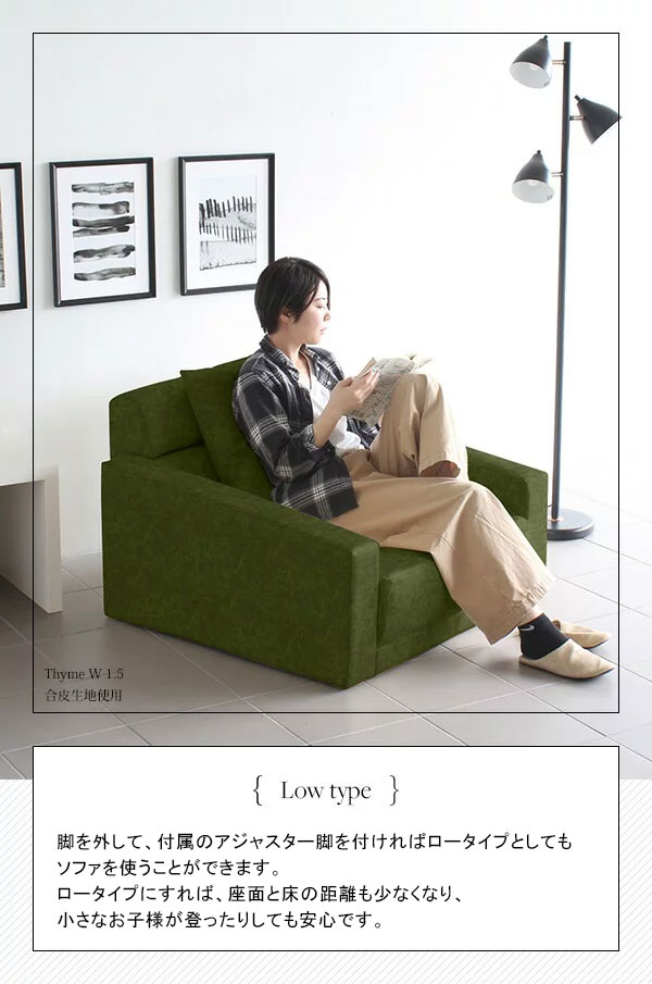 日本製/完成品(脚のみお客様取り付け)/同色60cmクッション1個付属/ローソファとしても使えるアジャスター付属/カバーの取り外し不可