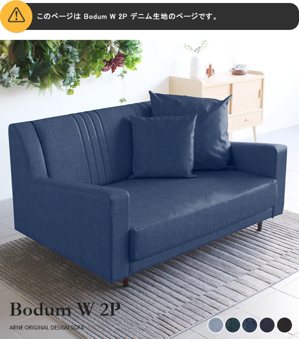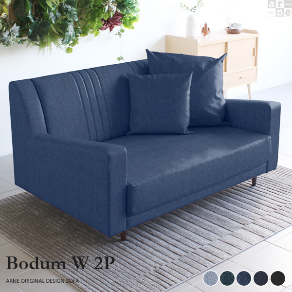 ソファ 西海岸 ブルー デニム 北欧 ハイバックソファ オフィス 2人掛け ローソファ ワイド 日本製 Bodum W 2P □
