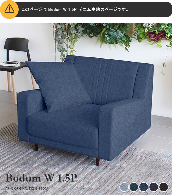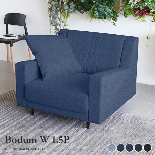 ソファ デニム 北欧 西海岸 ブルー ハイバックソファ オフィス 1人掛け ローソファ ワイド 日本製 Bodum W 1.5P □
