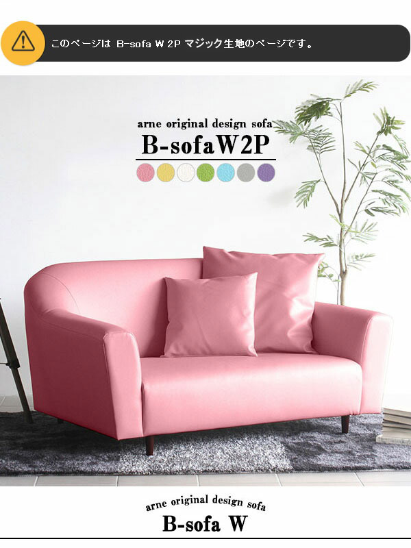 ソファ ソファー 2人掛け ピンク おしゃれ 座面ワイドソファー ダイニングソファ リビングソファー 日本製 北欧 B-sofa W 2P マジック □