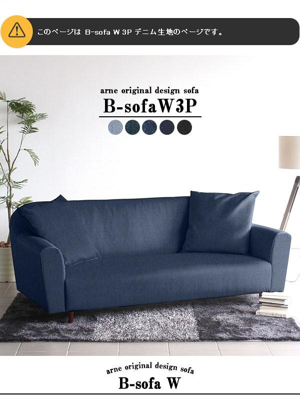 ソファ デニム 3人掛け 西海岸 おしゃれ カフェ レトロ ロータイプ ローソファー リビング 日本製 ワイドソファ B-sofa W 3P □