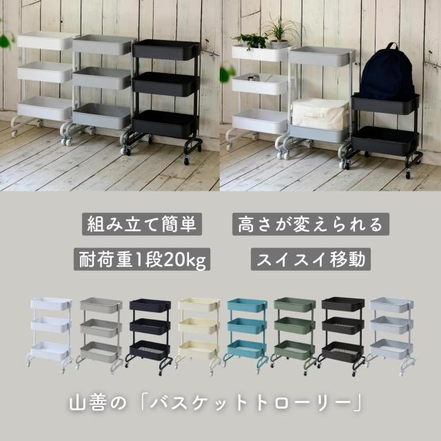 ワゴン キッチンワゴン 3段 (深3) 高さを変えられる バスケットトローリー キャスター付き 幅46 奥行38 高さ81cm 全体耐荷重60kg ランドセル ベビーワゴン オムツ キッチン 洗面所 ワゴン収納 山善 YAMAZEN 【送料無料】
