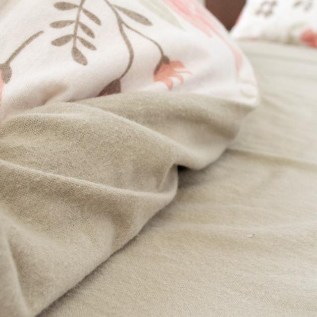 フラノ生地過去はウール等で作られていた紡毛糸を、ふんわり軽くて柔らかなコットンで。起毛した生地はたっぷり空気を含んであたたかく、滑らかな触れ心地です。
