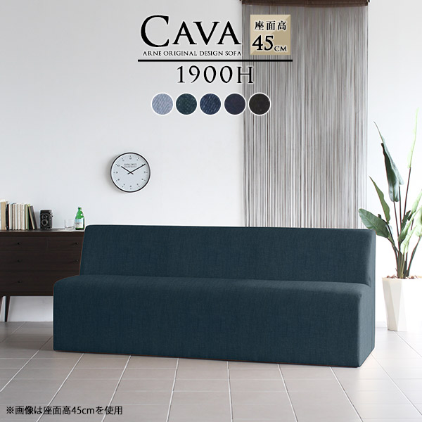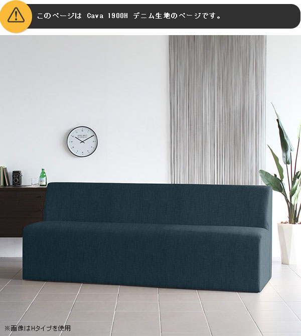 ソファ 3人掛けベンチソファー デニム 西海岸 アームレス 長椅子 ベンチ 背もたれ 三人掛け オーダー Cava 1900H アームレス デニム生地 □