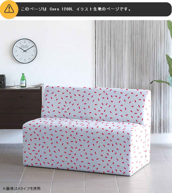 ソファ リビング ベンチソファ オーダー 可愛い かわいい アームレスソファ コンパクト ベンチ ダイニング Cava 1200L アームレス イラスト生地 □