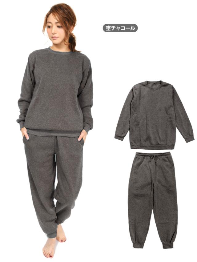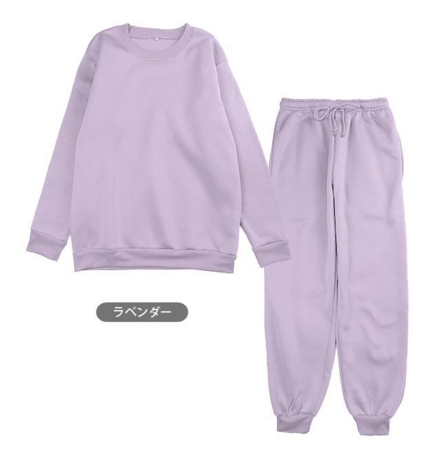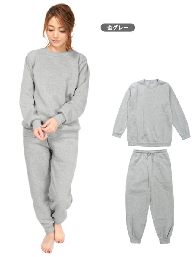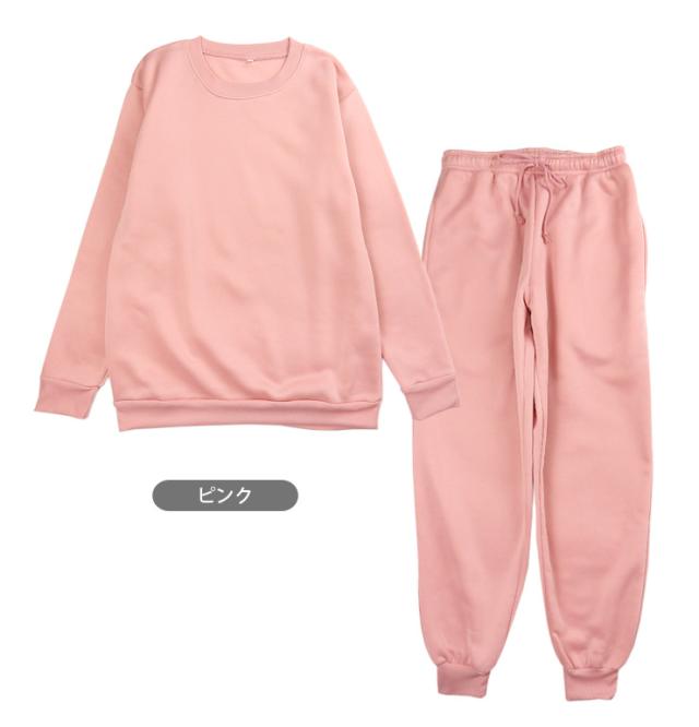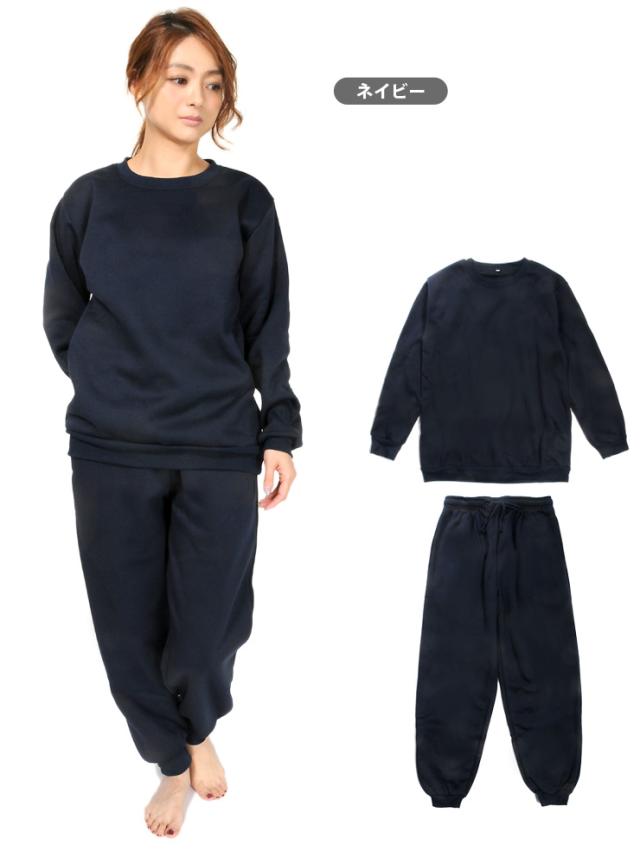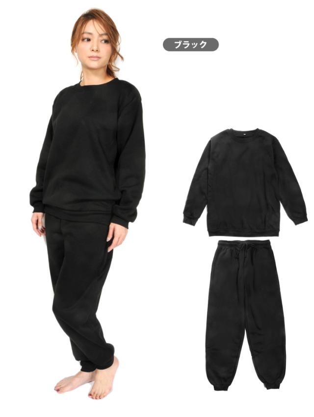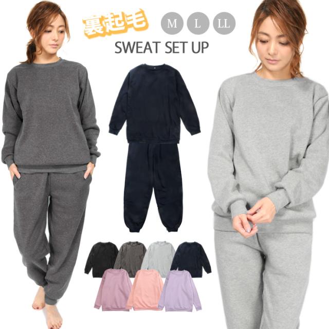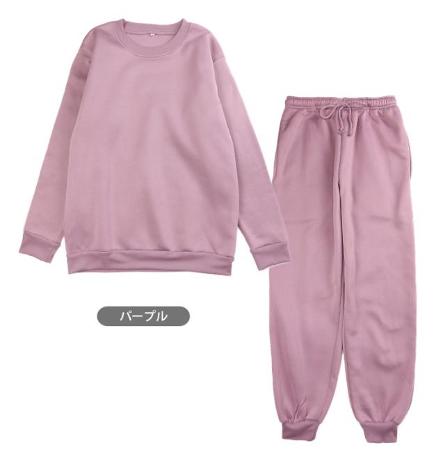 【送料無料】【大きいサイズあり】裏起毛 ルームウエア レディース 秋冬春 全7色 M L LL スウェットスーツ スエット 上下セットアップ 長袖 無地 シンプル トレーナー 寝間着 パジャマ 女性 婦人 丸首 ブラック グレー ネイビー パープル ピンク ラベンダー 1530