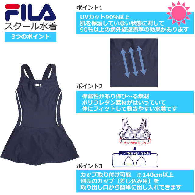 | スクール水着 女の子 キッズ ジュニア 子供 FILA(フィラ) スカート ワンピース水着 学校 水着 女子 子供水着 |