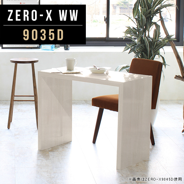 PCデスク パソコンデスク 90cm幅 書斎デスク 鏡面 ハイタイプ シンプルデスク ホワイト オフィスデスク 勉強机 受付 Zero-X 9035D WW ●