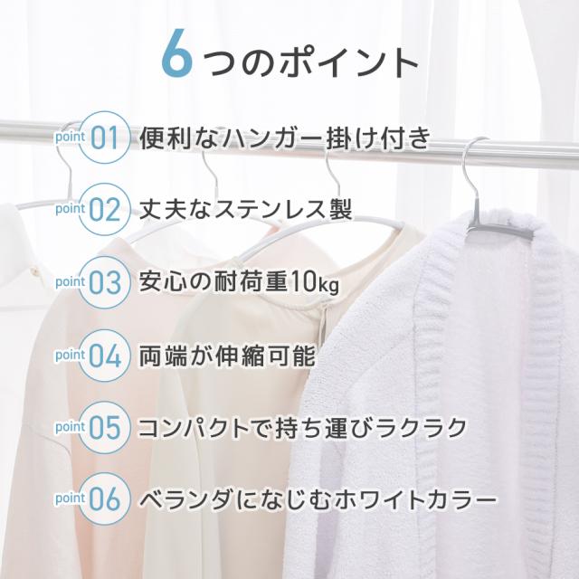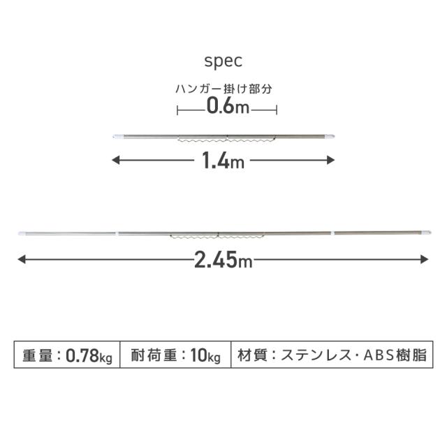 物干し竿 サビに強い 1.4m〜2.45m ハンガー掛け付 物干し 竿 ステンレス 伸縮 物干しざお ものほし 洗濯干し 洗濯物干し ベランダ用 屋外用 室内 洗濯物干し 洗濯 布団干し 洗濯用品 新生活