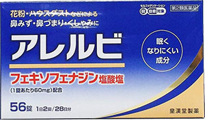【第2類医薬品】★アレルビ 56錠×10個セット【皇漢堂製薬】鼻みず・鼻づまり・くしゃみに 花粉やハウスダストなどによるアレルギー性鼻炎 アレグラと同じフェキソフェナジン塩酸塩配合