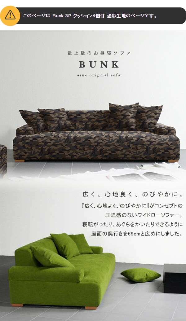 ソファー ロータイプ ワイド ロー 三人掛け 大型ソファ 3人掛 3人がけソファー 一人暮らし Bunk 3P □