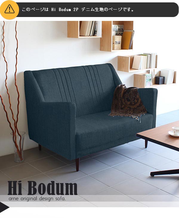 ソファ ハイバック デニム ブルー 西海岸 2人掛け コンパクト アーム付き カフェ ダイニングソファ 日本製 Hi Bodum 2P デニム □