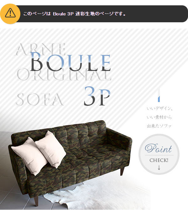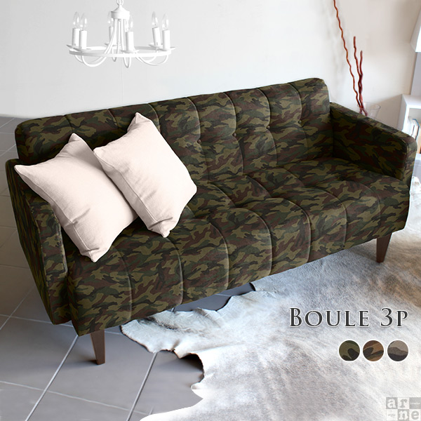 3人掛けソファー 日本製 北欧 肘あり 三人掛けソファ Boule 迷彩 Boule 3P □