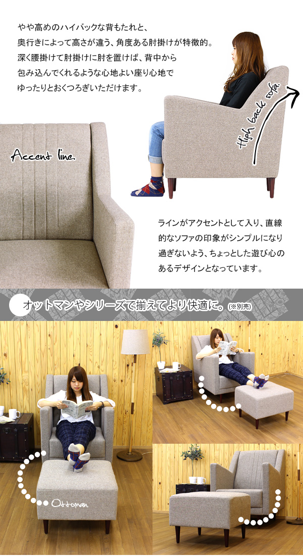 おしゃれな一人用ソファー/一人掛けソファ/ハイバック/ソファ/一人/カフェ/レトロ/肘/北欧/1人掛けソファー/シングルソファー/ハイバックソファ