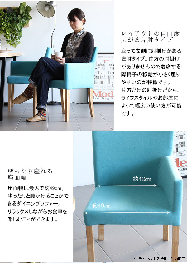 ダイニングチェアー ダイニングチェア カフェ おしゃれ 食卓椅子 カフェソファー 一人掛け JOY 1P S左肘/脚NA ソフィア □