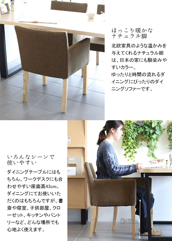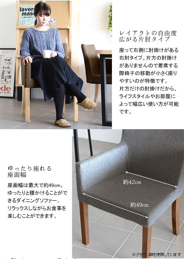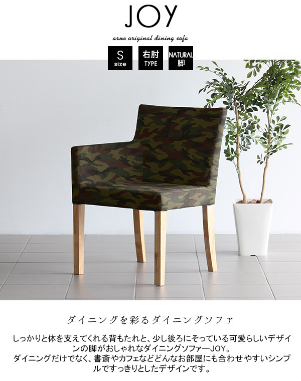 ダイニングソファ ダイニングチェア カフェ おしゃれ 肘付き ダイニング カフェソファー 片肘 JOY 1P S右肘/脚NA 迷彩 □