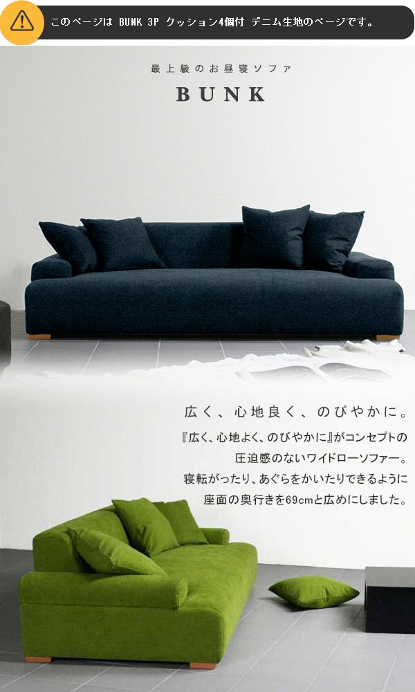 デニム ソファ デニムソファ デニムソファー ソファー 西海岸ァ フロアーソファ 3人掛け Bunk 3P □