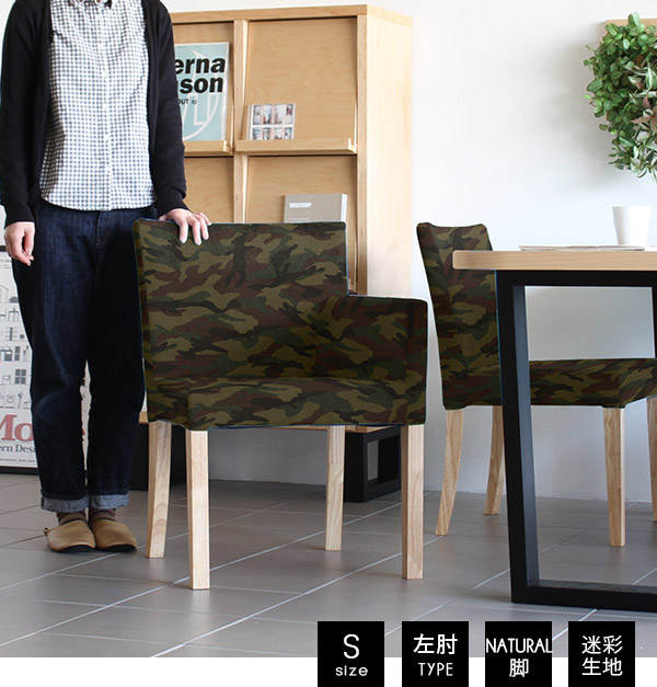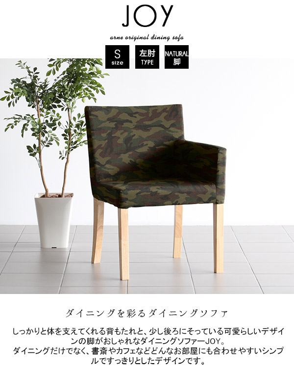 ダイニングソファ ダイニングチェア カフェ ダイニング おしゃれ 肘付き カフェソファー 片肘 JOY 1P S左肘/脚NA 迷彩 □