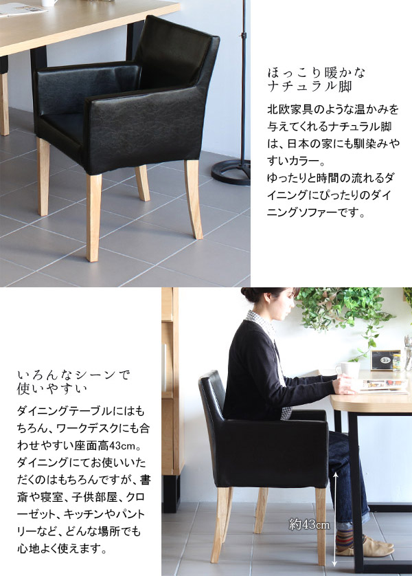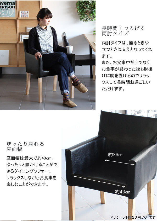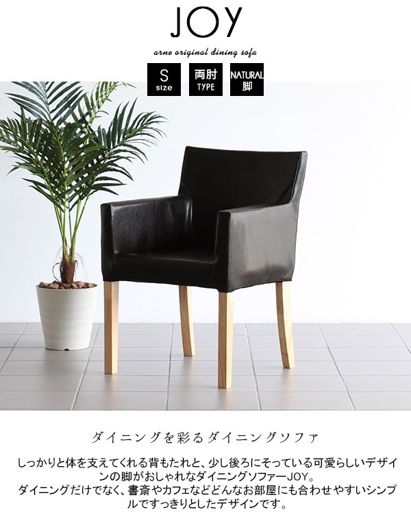 ダイニング アームチェア 1人掛 ダイニングチェア アーム カフェ おしゃれ 肘付き 合皮 レザー JOY 1P S両肘/脚NA 合皮 □