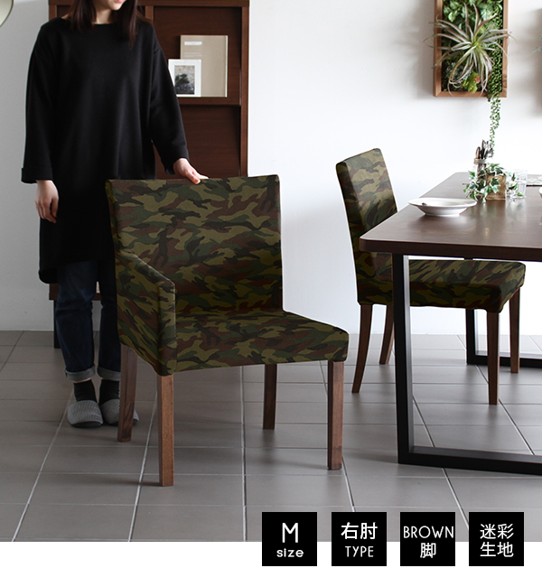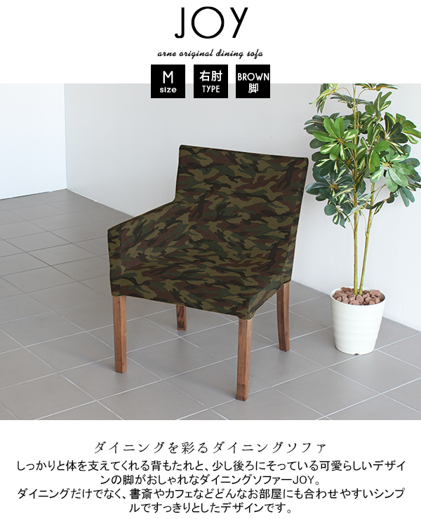 ダイニングソファ ダイニングチェア ダイニング カフェ おしゃれ 肘付き 片肘 JOY 1P M右肘/脚BR 迷彩 □