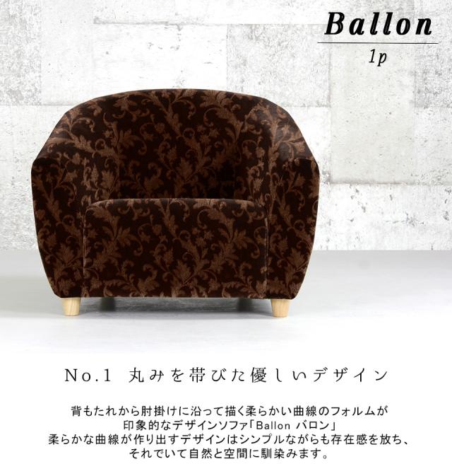 1人掛けソファー 北欧 おしゃれ シングルソファー コンパクト 一人掛け Ballon 1P ミカエル生地 □