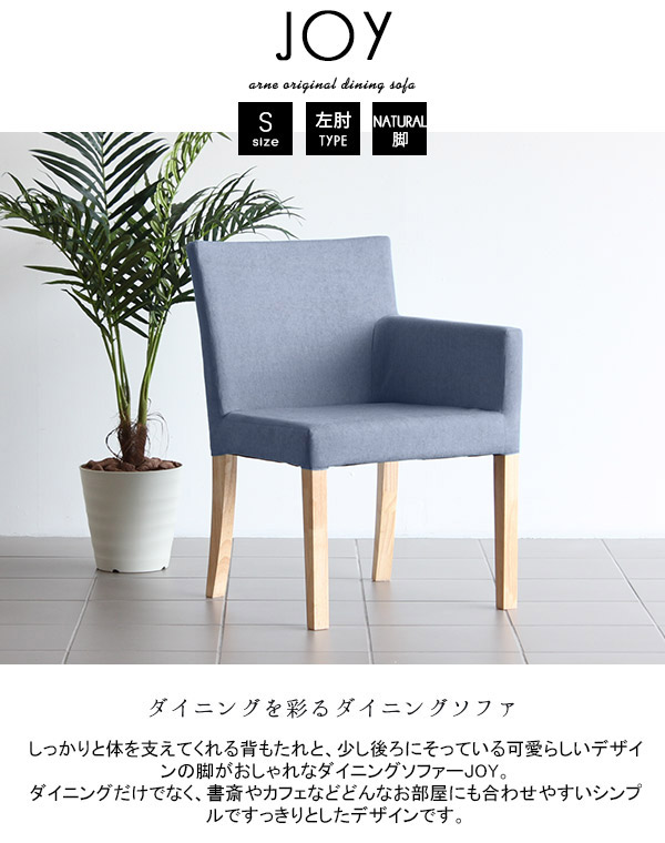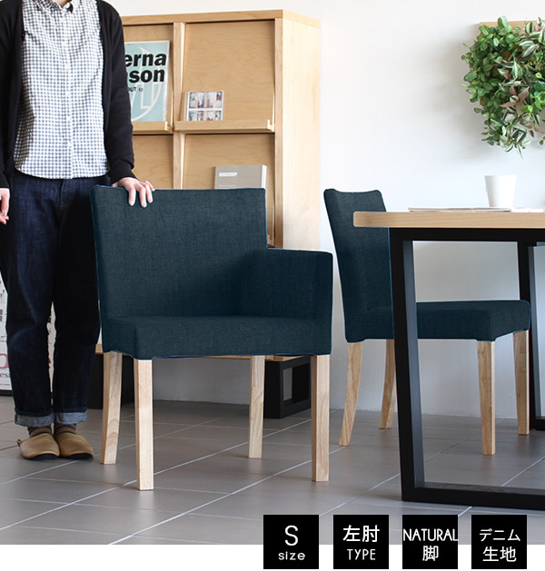 ダイニングチェア 肘付き ダイニングソファ アームチェア 1人掛 ダイニング カフェ JOY 1P S左肘/脚NA デニム □