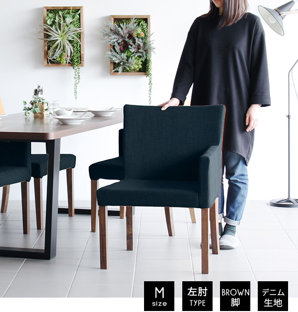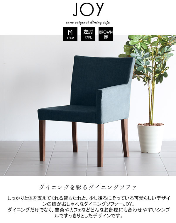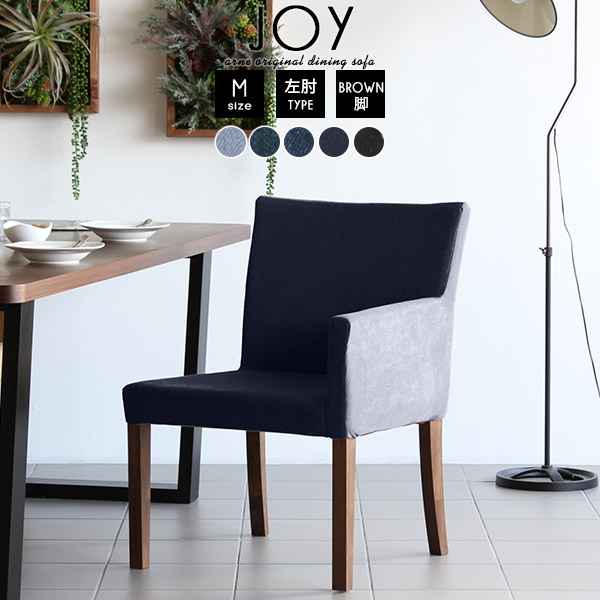 ダイニングチェア 肘付きグソファー アームチェア 1人掛 一人掛け カフェソファ ひとりがけ JOY 1P M左肘/脚BR デニム □