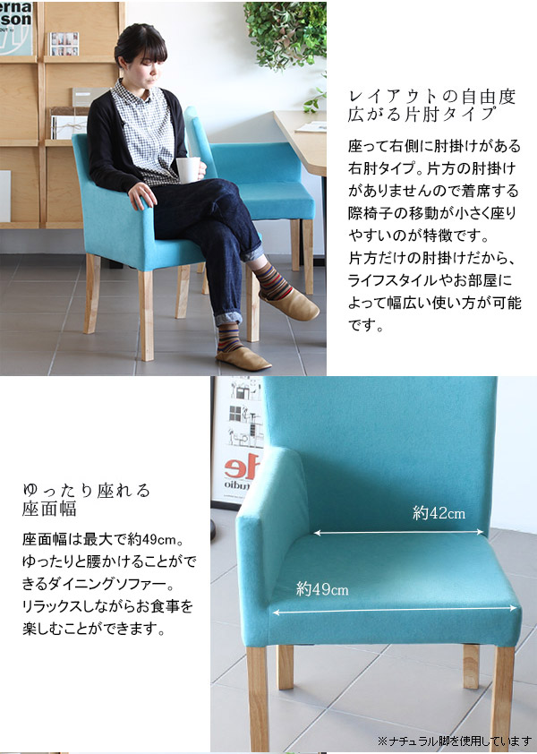 ダイニングチェア ダイニング アームチェア 1人掛 カフェ おしゃれ チェアー 1人 カフェソファー 一人掛け JOY 1P S右肘/脚NA ソフィア □