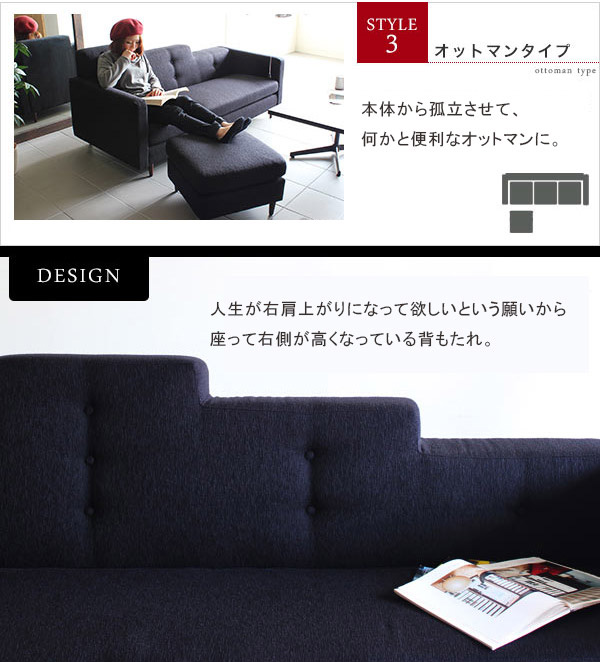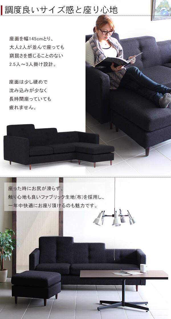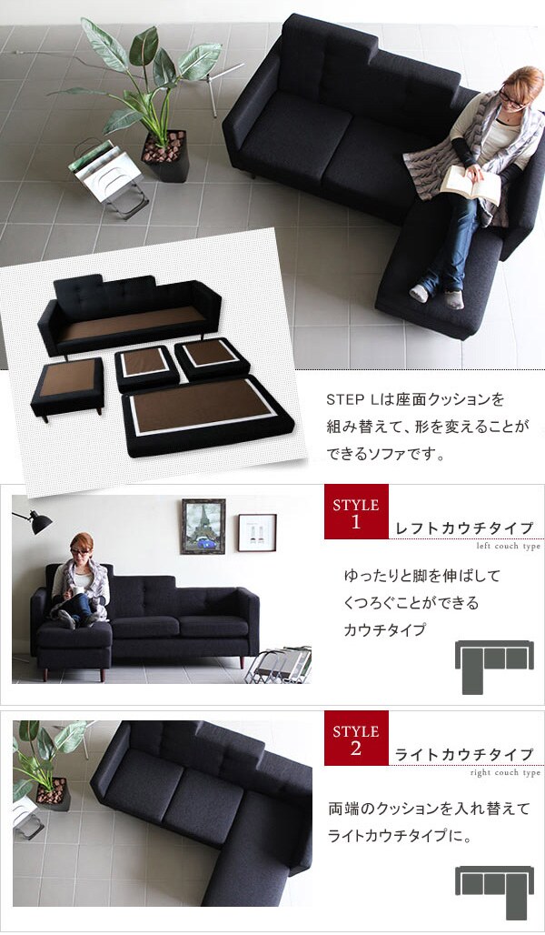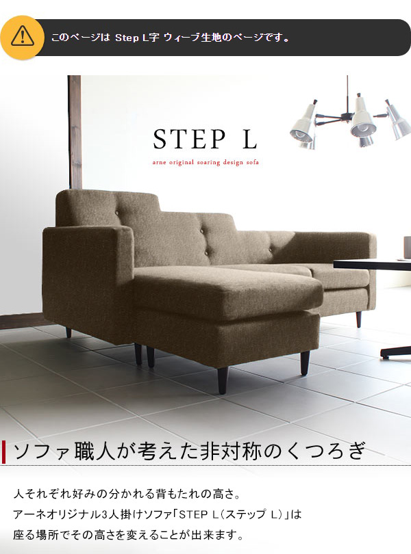 コンパクト l字ソファー コーナーソファオットマン付き ソファー 3人掛け 日本製 Step L字 ウィーブ Step L字 □