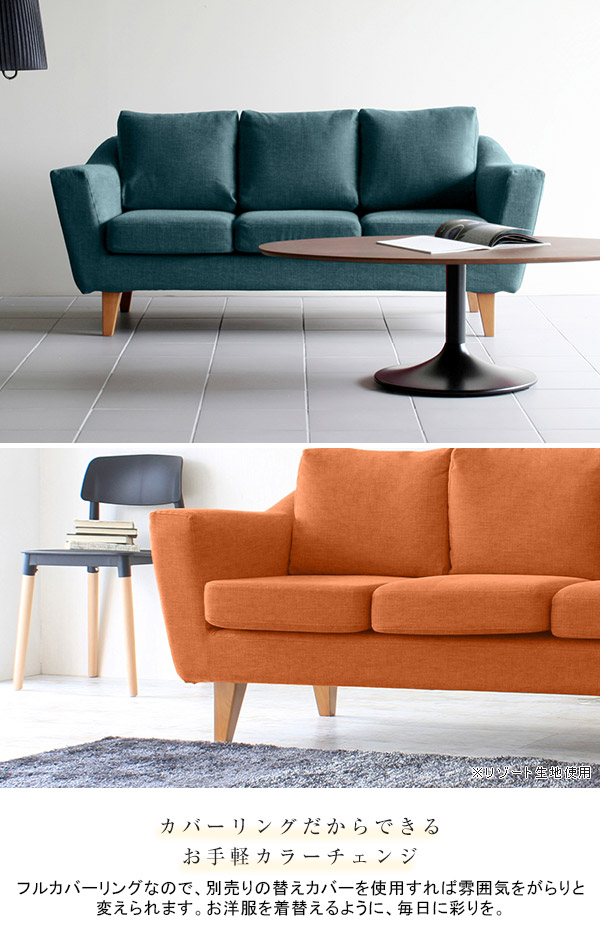 ソファ 3人掛け カバーリングソファ ソファー 北欧 カバー取り外し 幅173 シンプル 日本製 3人用 3人 3人がけソファー sofa Riche 3P ホリデー生地 □