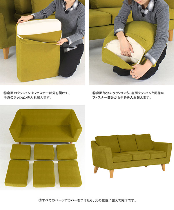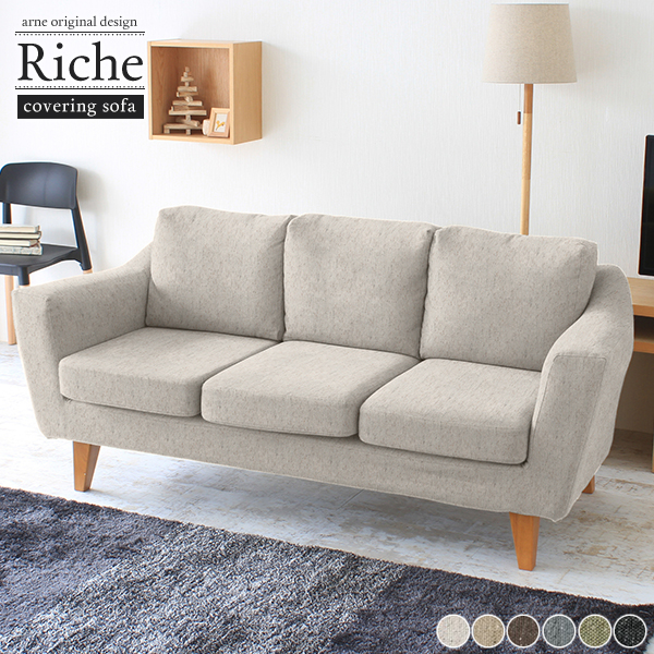 ソファ 3人掛け カバーリングソファ ソファー 北欧 カバー取り外し 幅173 シンプル 日本製 3人用 3人 3人がけソファー sofa Riche 3P NS-7生地 □