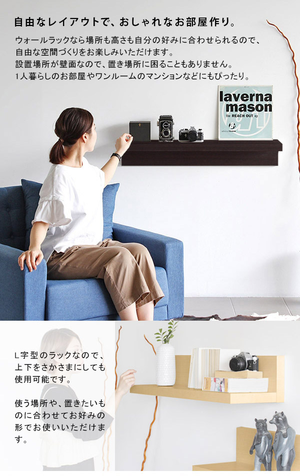 ウォールシェルフ ウォールラック 壁掛けシェルフ棚 90cm おしゃれ L字 ラック 付け 棚 壁に付けられる家具 1段 本棚 シェルフ Zero Wall ★
