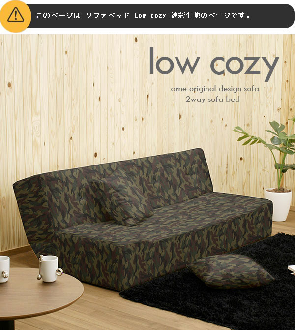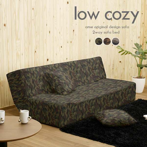 ソファベッド ローソファ 2人掛け 3人掛け 日本製 完成品 北欧 迷彩 Low cozy 迷彩 □