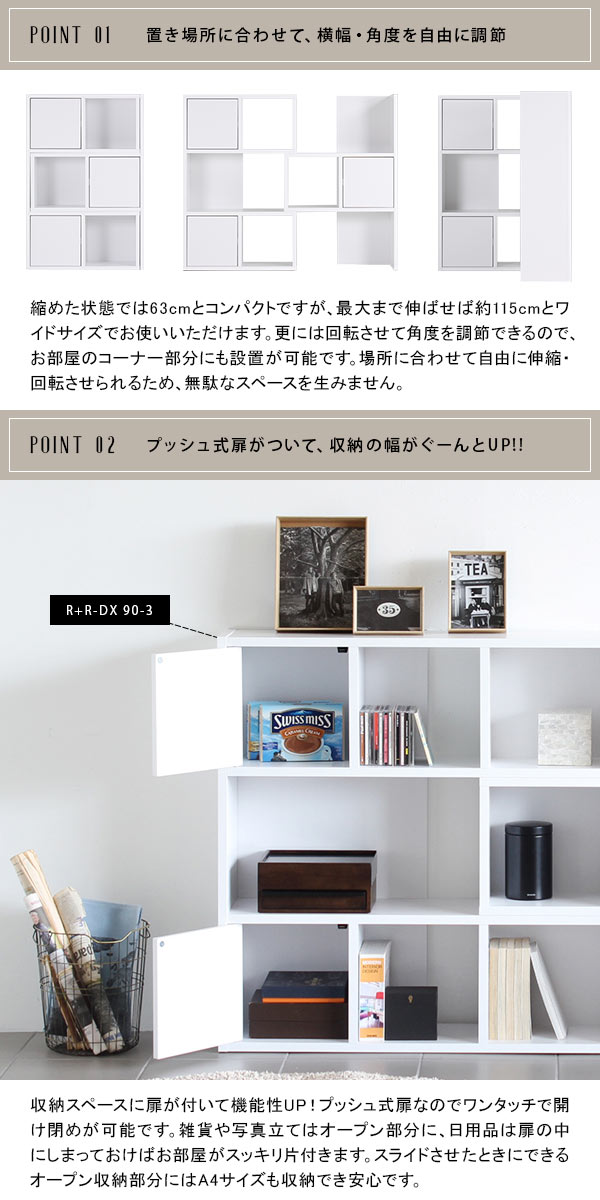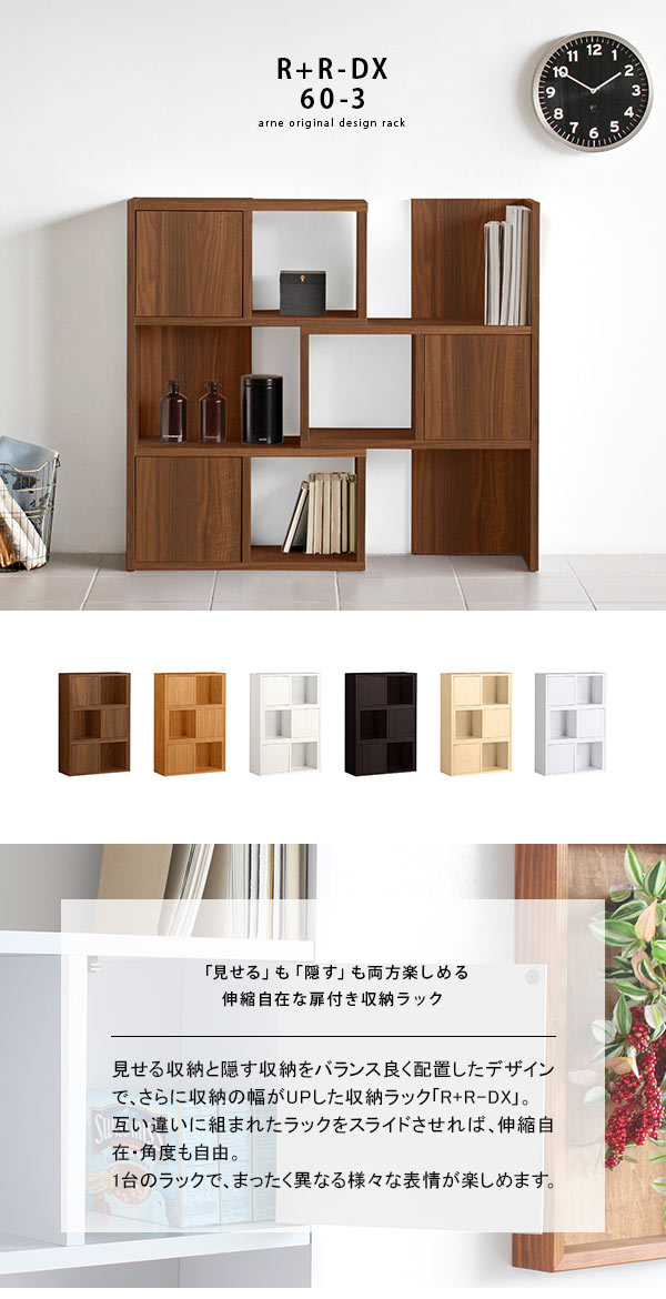 オープンシェルフ 3段 ディスプレイラック 扉 本棚 ディスプレイシェルフ コーナーラック 木製 北欧 R+R-DX 60-3 ☆