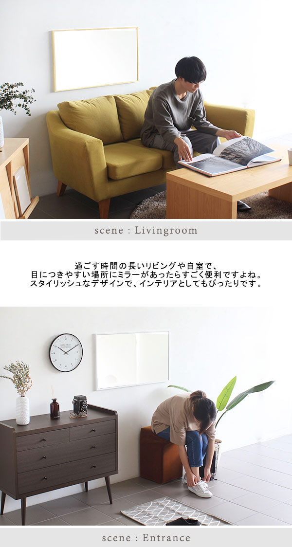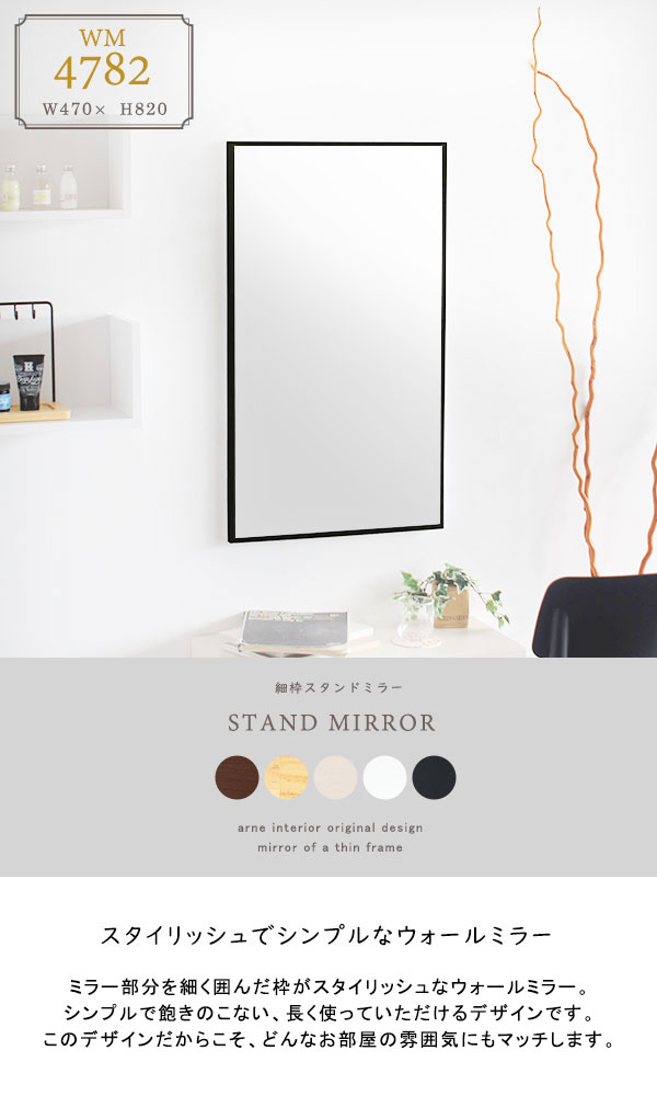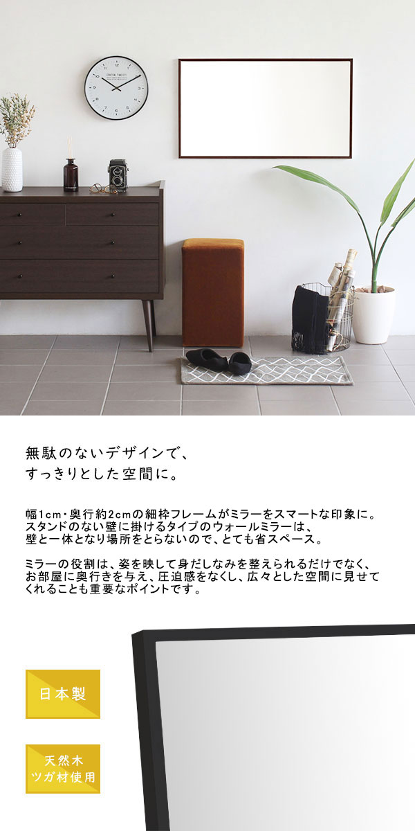 ウォールミラー 鏡 かがみ ミラー 壁掛けミラー 壁掛け 細枠 木製 日本製 飛散防止処理 北欧 おしゃれ シンプル ウォールミラー WM4782 ▼