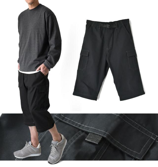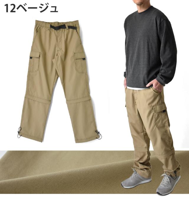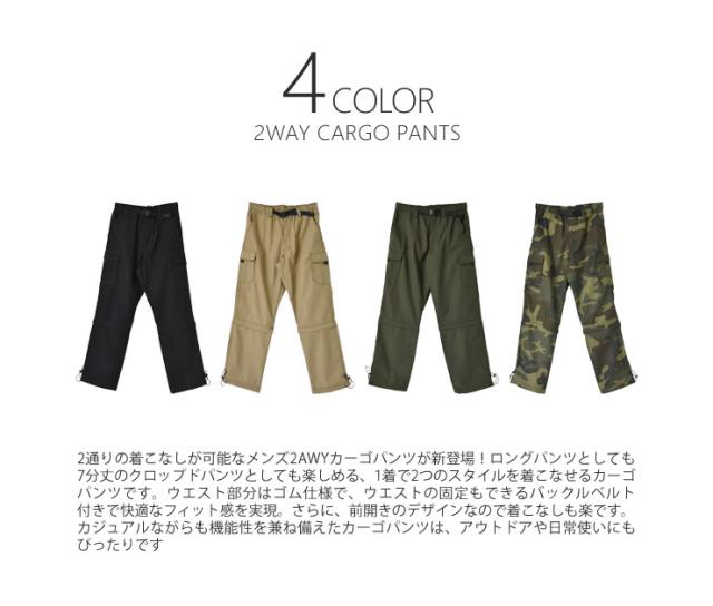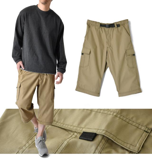2WAY カーゴパンツ メンズ ロングパンツ 7分丈 クロップドパンツ ウエストゴム 前開き ベルト付き【B3Q】【送料無料】【ゆうパケット】【メンズ】 父の日 ギフト 冬新作