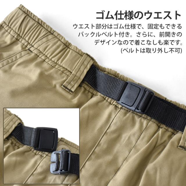 2通りの着こなしが可能なメンズ2WAYカーゴパンツが新登場!ロングパンツとしても7分丈のクロップドパンツとしても楽しめる、1着で2つのスタイルを着こなせるカーゴパンツです。ウエスト部分はゴム仕様で、ウエストの固定もできるバックルベルト付きで快適なフィット感を実現。さらに、前開きのデザインなので着こなし楽です。カジュアルながらも機能性を兼ね備えたカーゴパンツは、アウトドアや日常使いにもぴったりです