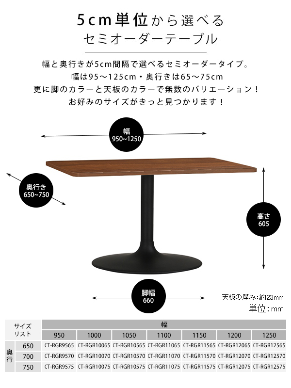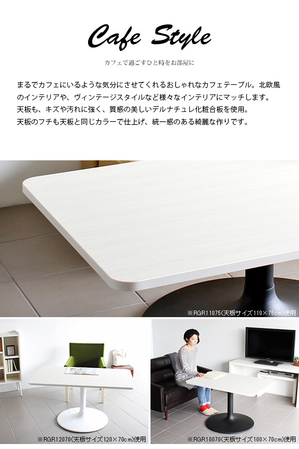 テーブル リビング 北欧 カフェテーブル 長方形 角丸 カフェ 机 シンプル おしゃれ 木製 ダイニングテーブル 食卓 CT-RGR11075 Atype-H脚 □