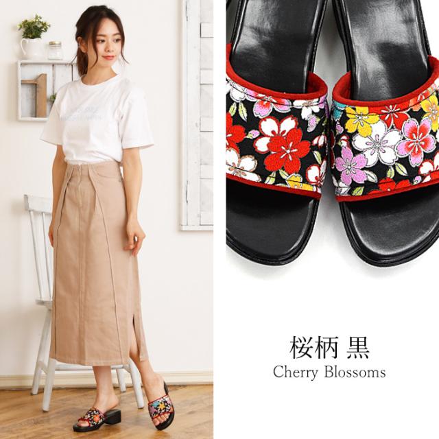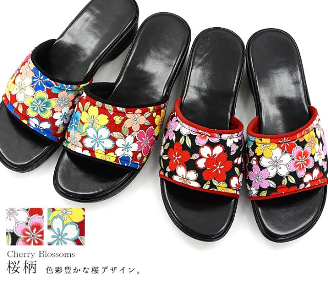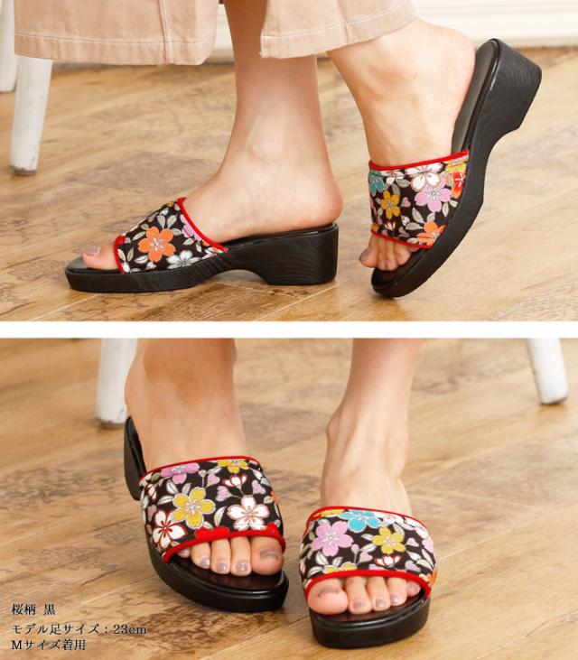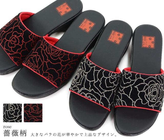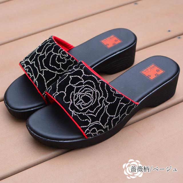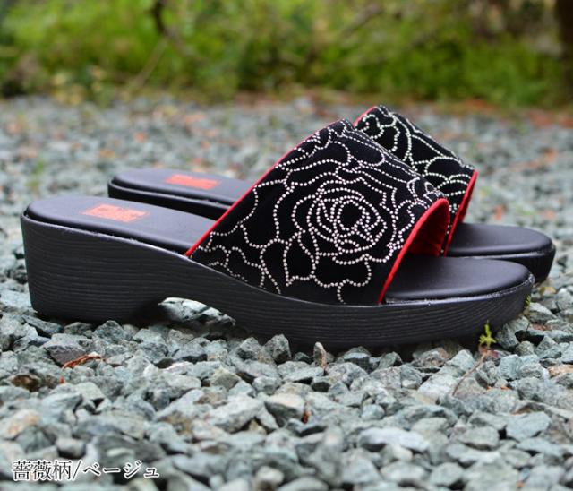 和柄サンダル レディース 日本製 木目調 印伝調 花柄 祭り 履きやすい 下駄風 ウレタン底 和 (msg-59941-59911) 浴衣 和装 履物 バラ 薔薇 スリッパ 女性 サンダル agesugi_sfa