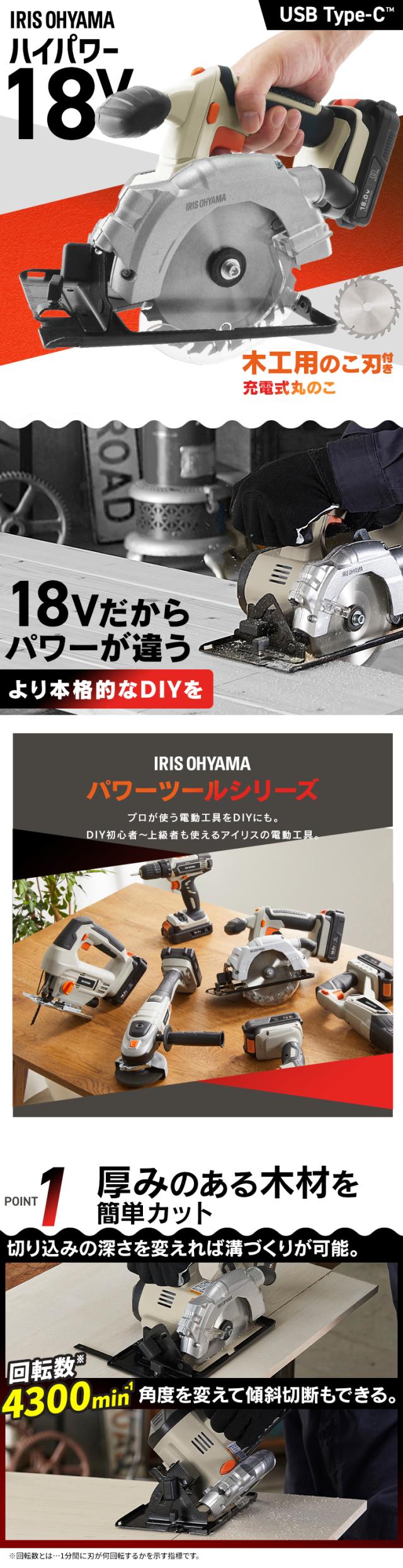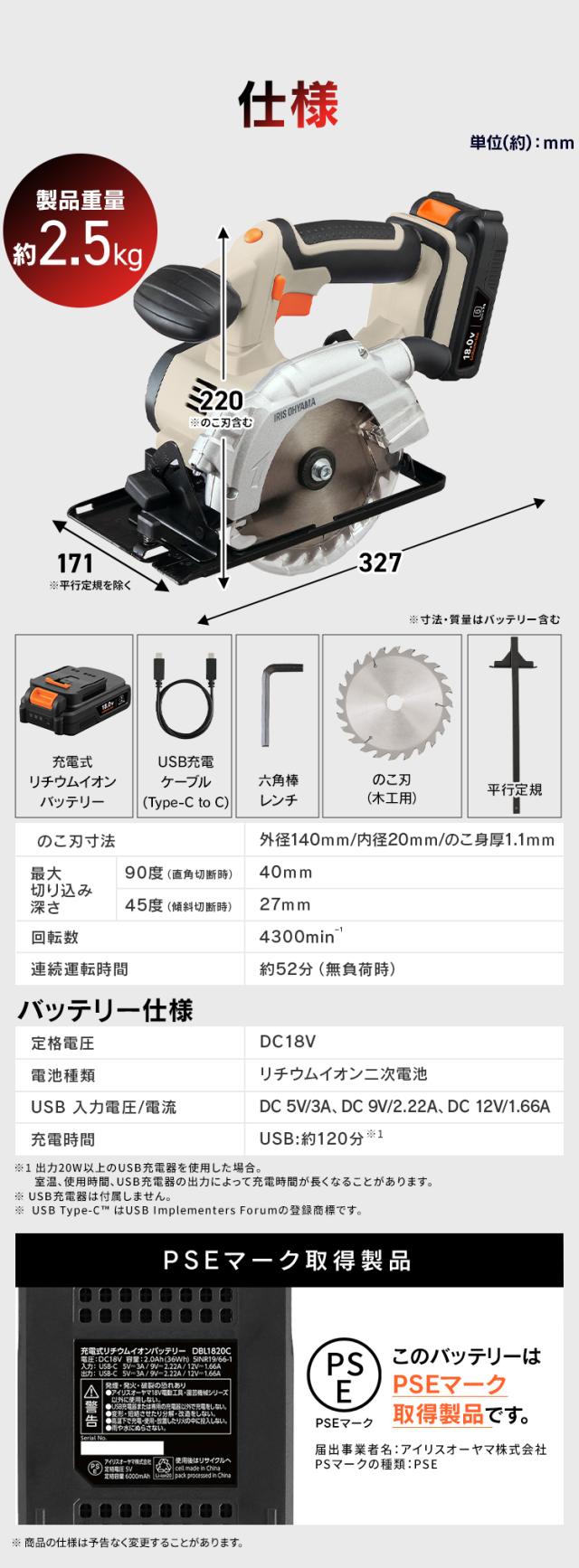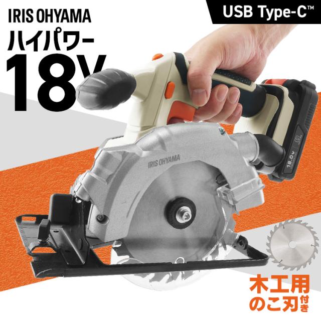 【Type-C充電&バッテリー共用できる】丸ノコ 充電式 丸鋸 18V 電動 平行定規付き マルノコ 丸のこ ガイド コードレス 角度調整可能 アイリスオーヤマ 電動工具 DIY 切粉排出部付き JSC140TC *