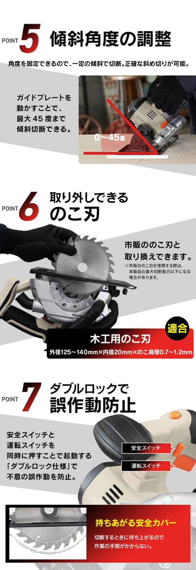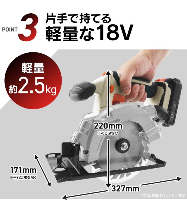 ハイパワー×軽量、充電式丸のこ[18V]。