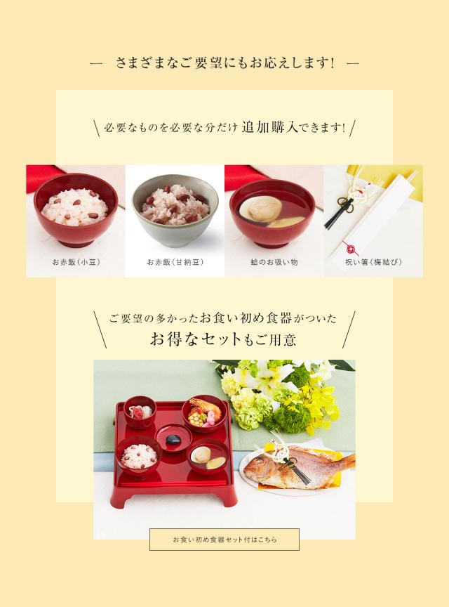 《お赤飯やお吸い物は、オプションで追加購入が可能》
